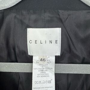 Elevate your closet with the Céline Black Double-Breasted Blazer. Perfect for any occasion - work or play, this sleek black blazer offers a sophisticated look. The branded buttons are everything!!! Great condition. Women’s size 46 which is equivalent to a US size 14.