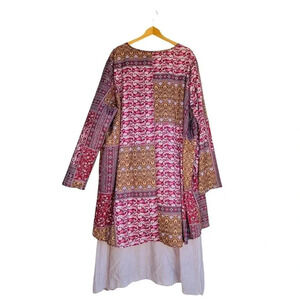 CELLABIE Women’s Plus Size 3XL Burgundy Brown Layered Paisley Floral Graphic Patchwork Long Maxi Dress.