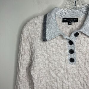CENTRAL PARK WEST Sweater Women XS Bobbie Polo Pullover Gray Cable Knit Collared