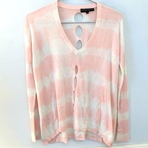CENTRAL PARK WEST Tie Dye Cutout V-Neck Pullover, blush and white