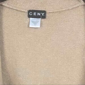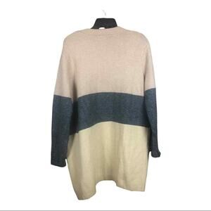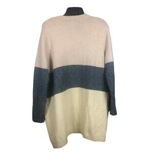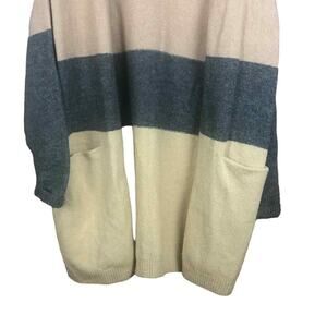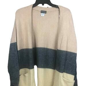 CENY Women’s Cardigan M Tan Gray Colorblock Open Front Pockets NWOT