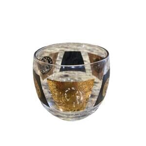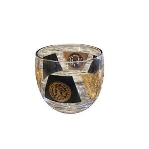 CERA 22KT Gold and Black Coins ROLY POLY GLASSES 1960s Set of 2 Mid-Century700
