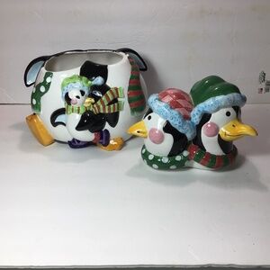 CERAMIC PENGUIN FAMILY COOKIE JAR