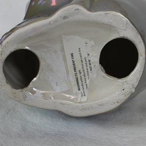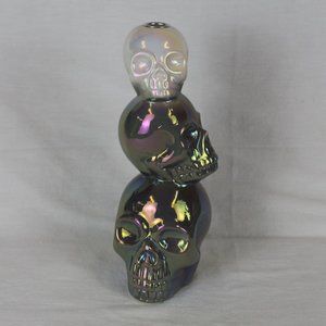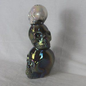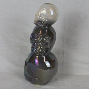 CERAMIC SKULL IRIDESENT CANDLE HOLDER GRAY & WHITE 3 STACKED HEADS VOTIVE CANDLE