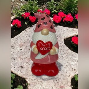Pink and red gnome just in time for Valentine. Measures 10.5 inches tall. Comes with two AA batteries. Cut outs in the top allow light to escape. Perfect for any sweetheart.