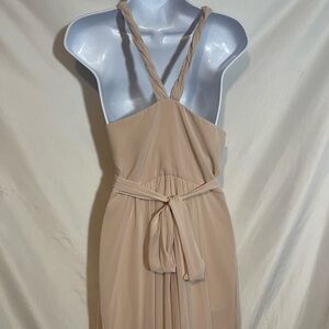 CEREMONY by Joanna August TAN Asymmetrical Slip Tie Waist Dress L