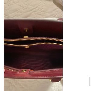 Elegant Prada Galleria Saffiano leather bag with detachable nylon shoulder strap, two top handles and zipper closure. The enamel triangle logo on the front decorates the bag. COMES WITH BAG AND CERTIFICATE