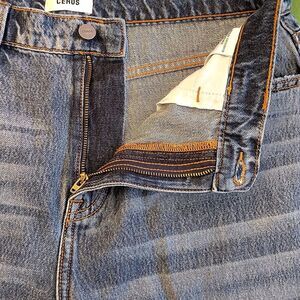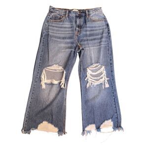 CEROS Blue Heavily Distressed High Rise Straight Leg Cropped Jeans Size 31
