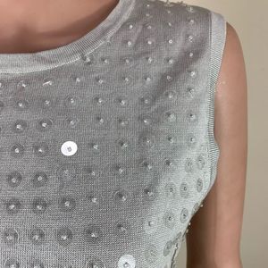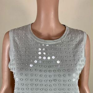 CERRUTI 1881 Women’s Sz 8 Sleeveless Sequin Silk Crew Neck Tank Top