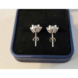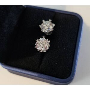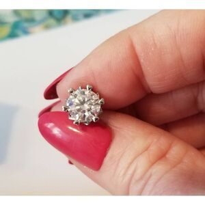 If you have never experienced the brilliance and fire of moissanite, you are missing out! Each one of these beautiful stud earrings features a whopping 2 carat round cut genuine moissanite gemstone for four carats total in the pair. The moissanite gemstones are D in color, VVS1 in clarity and have safety friction post back closures. They are set in .925 solid sterling silver and then layered in 18K white gold for a lifetime of durability and shine. They have been graded by the GRA and come with a certificate of authenticity and GRA moissanite report. They will test as diamond with a diamond tester. These earrings have a retail value well over $500 and come in a pretty gift box.