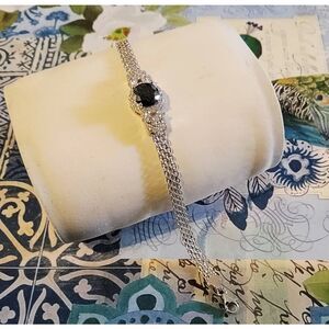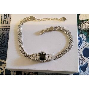 Brand new and exquisite gift! Both the 2.5 carat center faceted deep blue gemstone and the surrounding white halo and side cluster stones are certified genuine moissanite gemstones. They are set in a 1/4" Width mesh bracelet done in solid 925 sterling silver and layered in platinum. It is 7"-7.5" in length with a Lobster Claw clasp closure and 925 stamped heart shaped hang tag. Colored moissanite stones are usually at a higher price point, so we are excited to bring you this fabulous value.