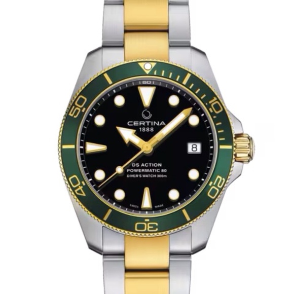 CERTINA DS ACTION POWERMATIC80 BLACK/GREEN/GOLD ON BRACELET 38MM
