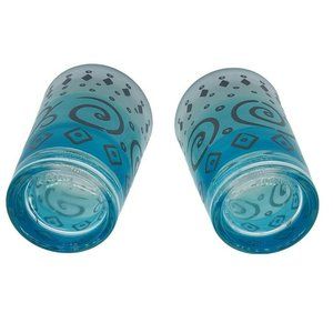 CERVE Drinking Glass Turquoise Embossed Pattern MCM Made in Italy 10 oz