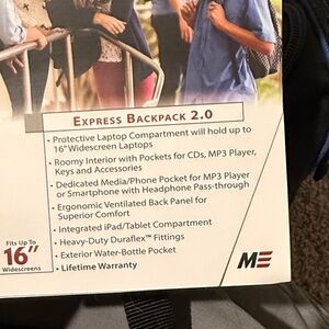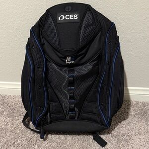 Very padded, hard cover backpack with LOTS of compartments. New CES logo/patch. Laptop compartment, water bottle slot, adjustable straps.