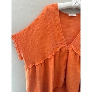 CES FEMME | Orange Textured Cotton Gauze Babydoll Top!