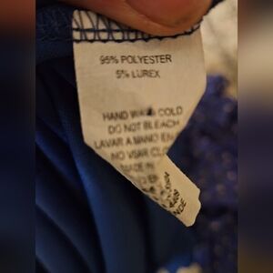 CES FEMME Satin flowy ruffle layered ditsy flower print dress in Blue. Size 4