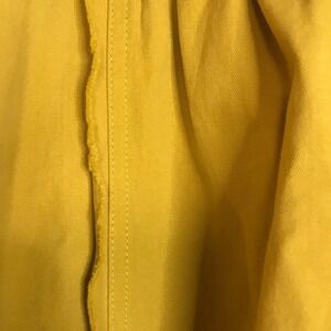 Cute denim mustard color full crop top with puffy sleeves. Detail stitching, button down.