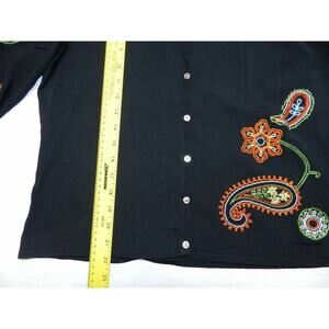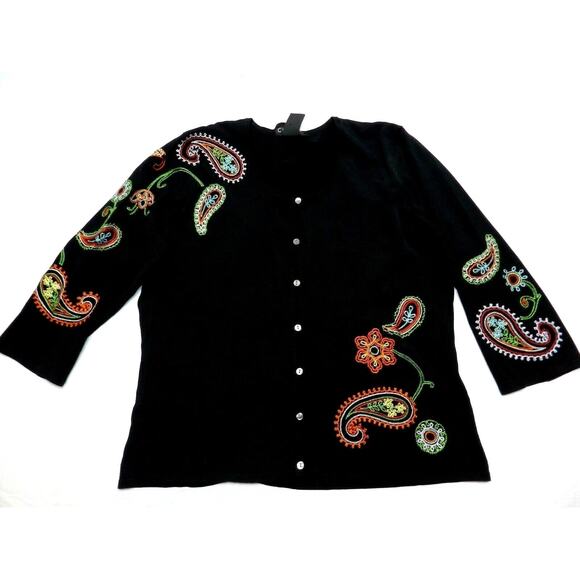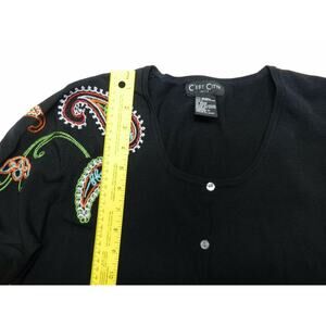 C'EST City knits Cardigan women's size LARGE black rayon NEW paisley (aa91)