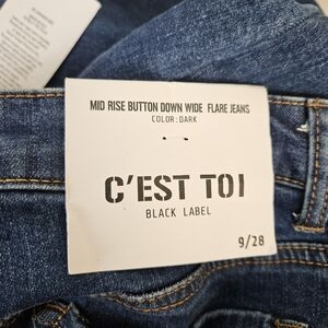 C'EST TOI Mid Rise Button Down Wide Flare Jeans Size 9/28 NWT