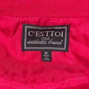 C’ESTTOI Quilted Puffer Vest Women's Medium Red Diamond Stitch Zip Riding Style