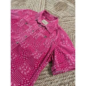 C.E.Schmidt Work Wear Pink 100% cotton bandana pattern button front top SZ M