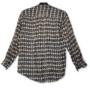 CEZAR Silk Blouse Mandarin Collar Long Sleeve Pockets Women's Size M