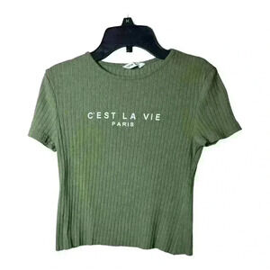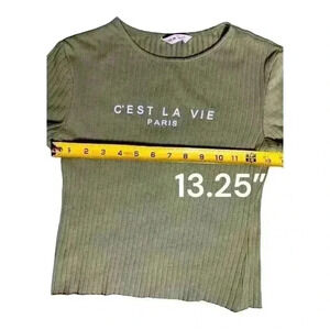C’Est La Vie tee, Army Green, size 10Y/EU140