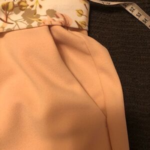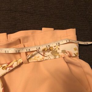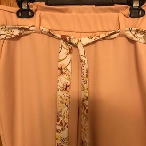 Light pink C Est 1946 ankle length dress slacks with floral tie belt. Size L. Pockets. No visible wear
