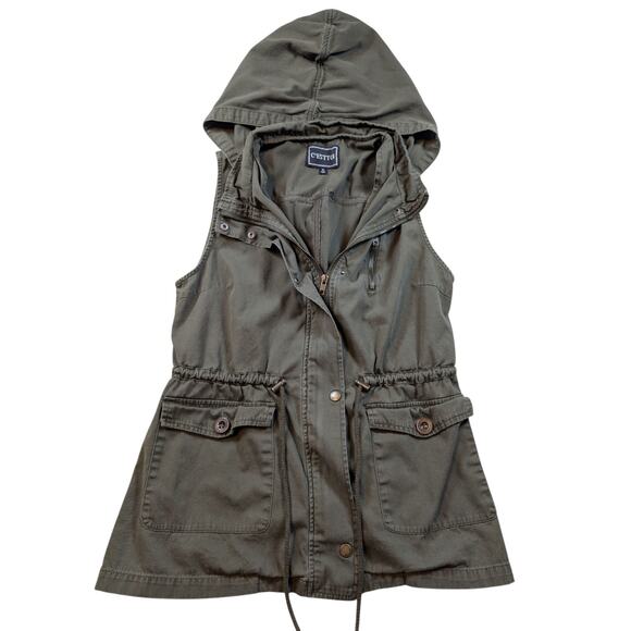 C'Esttoi Womens Army Green Vest Button Up/Zip Up Waist String Pockets Size M