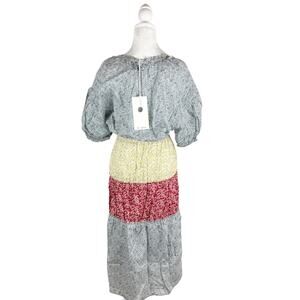 C.F. Goldman Floral Midi Dress 2 Blue Red NWT