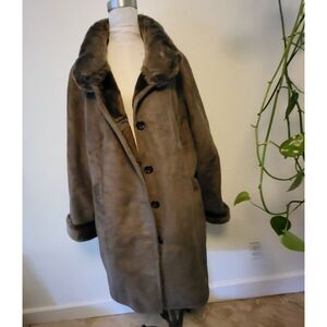 CG COLLECTION BY GALLERY Jacket Womens 2X Faux Fur Lined Button Front Coat Brown