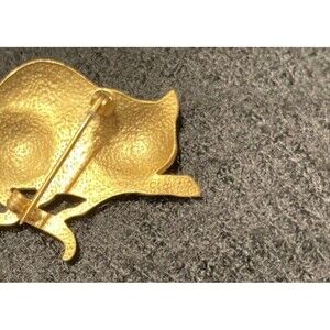 C&G Cheshire Cat Brooch Alice In Wonderland Pin Gold Tone Vintage 1991