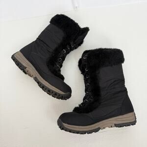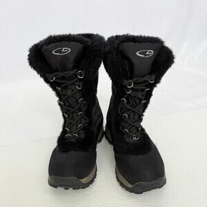 CG Neveah Black Faux Fur Winter Snow Boots Lace Up, Size 7