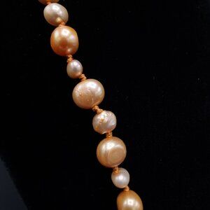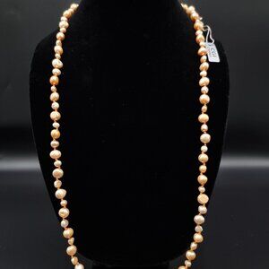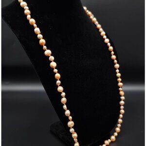 CGI Freshwater Pearl Long Necklace Hand-Knotted Natural Iridescent Peach