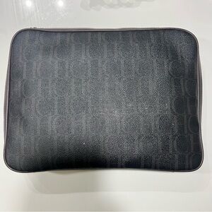 CH Carolina Herrera Dark Brown Monogram Canvas Laptop Bag