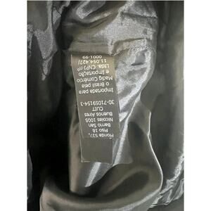 Design features: Satin waistband and trim; faux welt pocket details at front; front vent; fully lined