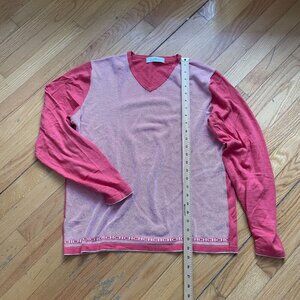 CH Carolina Herrera V-Neck Combed Cotton Knit Sweater Men Large Pink White College Casual Work