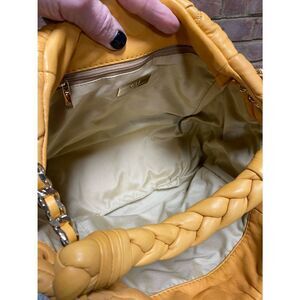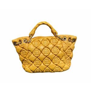 CH Carolina Herrera Mustard Leather Puffer Tote Handbag