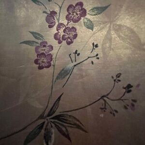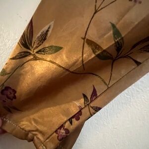 CH Signature (Caroline Herrera) Gold Button Blouse. Impeccable Design with that touch of femininity. Striking gold with delicate purple and white flowers adorn this show piece. There is embossed leaves on the design as well. Size Large