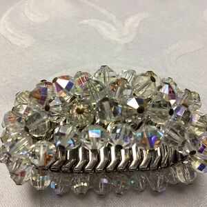 This is positively amazing. I’m guessing from memory circa probably 1950s to 1960s. These were all the rage and they still are they call him cha-cha because they have a little wiggle wiggle to them and they are just positively gorgeous. I couldn’t even capture the bling to show you how beautiful they’re made and how each little individual Krystal is riveted in with a teeny tiny. I don’t know if it’s a screw or a rivet one of the antique dealers that sells vintage jewelry told me what it was, but perhaps you might know anyway it’s divine Bling on speed. You just don’t find these anymore. This is a treasure that you will love and you will wear off in the compliments will fly the way the light catches these crystals is beyond imagination, and you feel like a princess when you wear it.