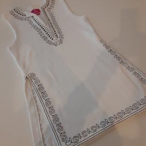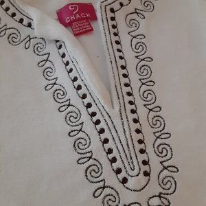 CHACH - Terrycloth beach cover up - girls size - very chic little girls tunic - great condition - ivory terry w/ brown top stitch - 25" length