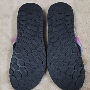 CHACO PINK AND BLACK LOWDOWN FLIP FLOPS, SIZE 8