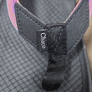 Step into comfort with Chaco women's sandals. Featuring a stylish black base with pink straps, these sandals are perfect for casual outings.  Great arch support and super comfortable!  GENTLY WORN.