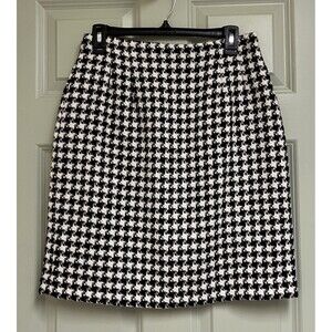 CHADWICKS Black White Houndstooth Pencil Skirt Women 10 Petite Wool Lined Career
