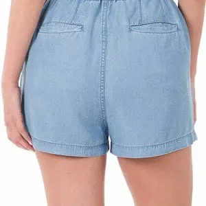 CHAMBRAY DRAWSTRING RUFFLE WAIST SHORTS WITH POCKETS
