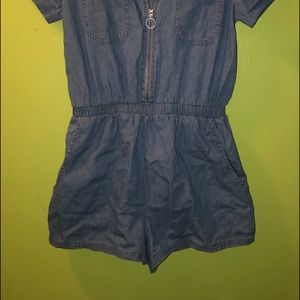 CHAMBRAY ROMPER with SILVER ZIPPER . NEVER WORN w/ TAG