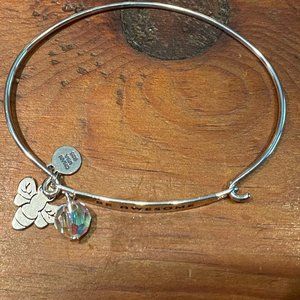 STERLING SILVER BRACELET WITH "BE AWESOME" ENGRAVING, STERLING SILVER BEE CHARM, AND SWAROVSKI CRYSTAL CHARM BY CHAMILIA