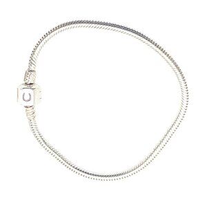 Authentic 9.1-Inch CHAMILIA Sterling Silver Snake Chain Bracelet With Chamilia Logo Snap Clasp. Simple and classic in design, the classic Sterling Silver bracelet from Chamilia offers a modern look. Compatible with Pandora and other European brands.