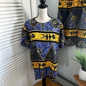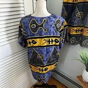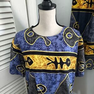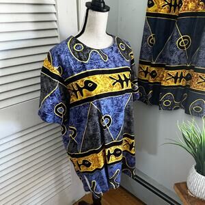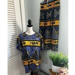 CHAMPAGNE COTTON Womens Pant Set Wide Leg Pull On Pants Drawtstring Global Ethic Print Boho Festival Artsy Short Sleeve Relaxed Fit Tunic