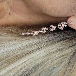Stunning rosy stone dramatic length dangles . Perfect for special occasions or to add some bling to any look. Hypoallergenic posts.